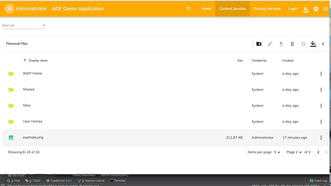 Continuing on our journey for ADF, this release had a big focus on enhancing the Alfresco Digital Business Platform story. We have added new features to enable deeper Process and Content integration between ACS and APS, meaning you can now browse and attach content from ACS in your APS Forms. We've also added more configuration around the Process Start [Form,](../../lib/process-services/task-list/models/form.model.ts) allowing you to pre-populate fields. This enables use cases to start processes directly from a document.