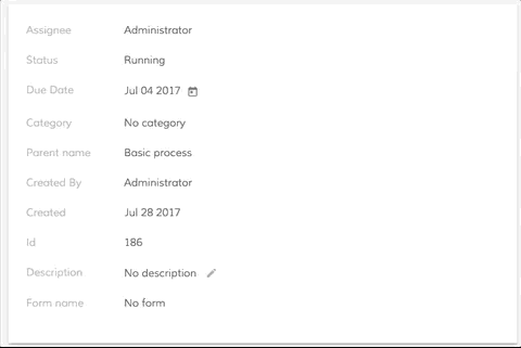 The due date and the description of the task details are now editable and integrate into the adf-task-header component
